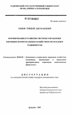 Формирование и развитие системы управления жилищно-коммунальным хозяйством Республики Таджикистан тема диссертации по экономике, полный текст автореферата