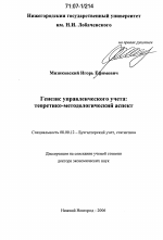 Генезис управленческого учета: теоретико-методологический аспект тема диссертации по экономике, полный текст автореферата