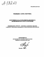 ИСТОЧНИКИ И ФАКТОРЫ ИННОВАЦИОННОГО ЭКОНОМИЧЕСКОГО РОСТА В РЕГИОНЕ тема диссертации по экономике, полный текст автореферата