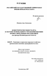 КОНКУРЕНТОСПОСОБНОСТЬ ВУЗА В СИСТЕМЕ РЕГИОНАЛЬНОГО УПРАВЛЕНИЯ ВЫСШИМ ПРОФЕССИОНАЛЬНЫМ ОБРАЗОВАНИЕМ (на примере Калининградской области)