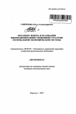 Механизм выбора и реализации инновационно-инвестиционной стратегии региональной экономической системы тема диссертации по экономике, полный текст автореферата