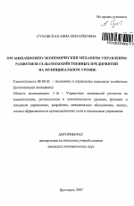 Организационно-экономический механизм управления развитием сельскохозяйственных предприятий на муниципальном уровне тема диссертации по экономике, полный текст автореферата